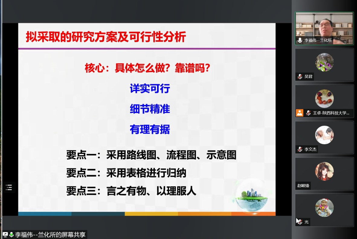 報告會結(jié)束后,李福偉結(jié)合自身申報和評審國家自然科學基金方面的經(jīng)歷,對自然科學基金申請書撰寫的各環(huán)節(jié)做了全面、細致的解讀和指導,并對部分青年教師的基金申請書進行深入研討和幫扶,意見中肯,為與會教師基金申請書的修改提供了新的思路。