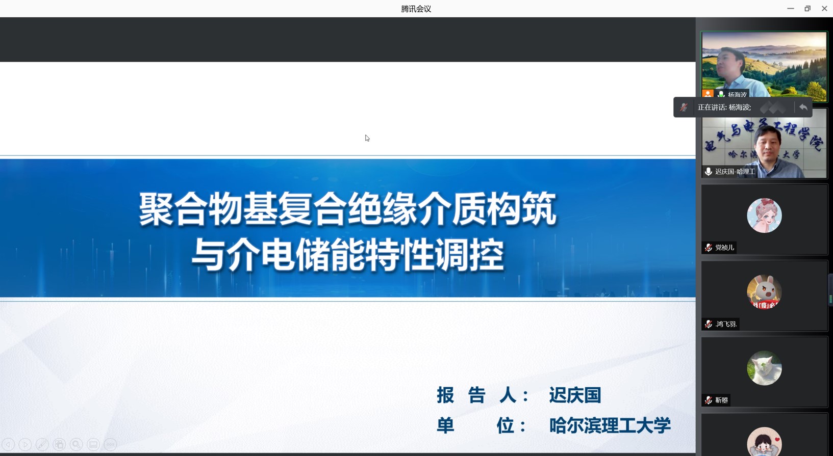 1月20日上午,應(yīng)我校材料科學(xué)與工程學(xué)院邀請,哈爾濱理工大學(xué)遲慶國教授做客我校前沿科學(xué)報告,作了題為“聚合物基復(fù)合絕緣介質(zhì)構(gòu)筑與介電儲能特性調(diào)控”的學(xué)術(shù)報告,報告由教務(wù)處處長楊海波教授主持,材料學(xué)院教師和相關(guān)方向研究生參加了本次報告會。