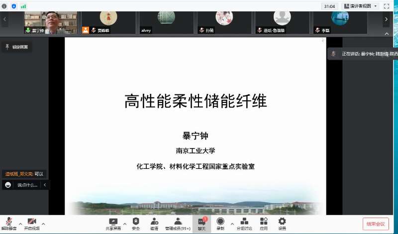 1月3日下午,受我校輕工科學(xué)與工程學(xué)院、科技處及前沿院邀請(qǐng),南京工業(yè)大學(xué)教授暴寧鐘做客我校“前沿科學(xué)報(bào)告”,作了題為“高性能柔性儲(chǔ)能纖維”的線上學(xué)術(shù)報(bào)告。輕工學(xué)院部分教師及研究生聆聽了本次報(bào)告。報(bào)告由我校研究生院院長陸趙情主持。