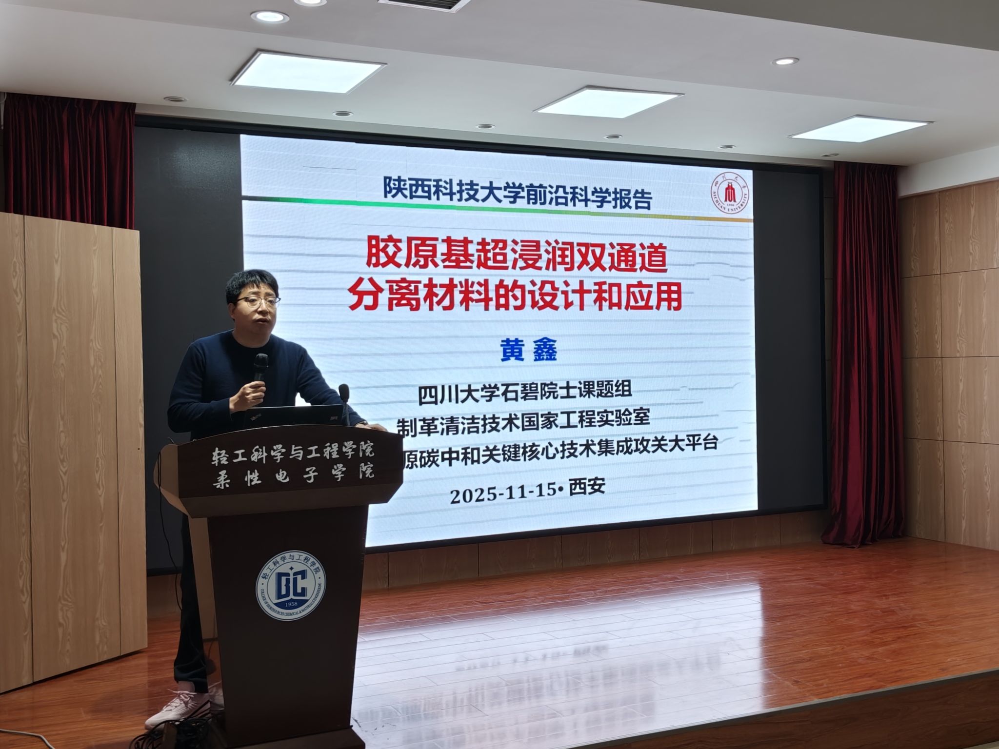 近日,應(yīng)科技處、前沿院與輕工科學(xué)與工程學(xué)院(柔性電子學(xué)院)邀請(qǐng),四川大學(xué)黃鑫研究員、清華大學(xué)何向明教授做客我?!扒把乜茖W(xué)報(bào)告”,作了題為“膠原基超浸潤(rùn)雙通道分離材料的設(shè)計(jì)和應(yīng)用”和“鋰離子電池的實(shí)用化創(chuàng)新研究”的學(xué)術(shù)報(bào)告,輕工學(xué)院相關(guān)專業(yè)教師和學(xué)生參加會(huì)議。