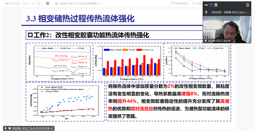 11月21日上午,河北工業(yè)大學能源與環(huán)境工程學院劉臣臻教授做客我?!扒把乜茖W報告”,作題為“相變材料熱性能調控及其儲熱過程傳熱強化”的學術報告。報告會由電控學院青年教師李馨怡老師主持,學院相關專業(yè)教師、研究生參加了此次報告會。