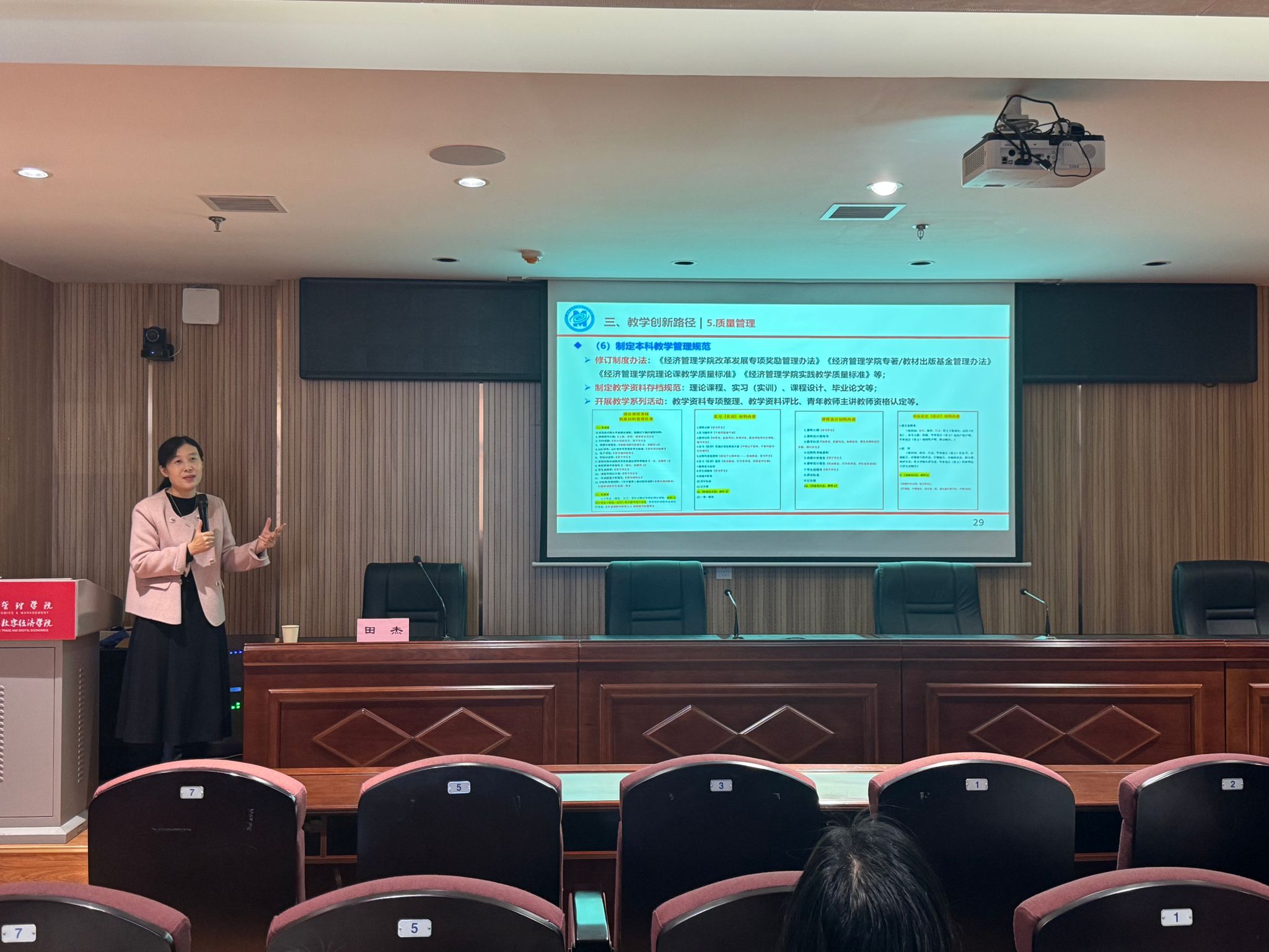 為落實本科教育教學審核評估工作要求,扎實推進質(zhì)量文化建設,健全人才培養(yǎng)質(zhì)量長效保障機制,11 月 27 日上午,應教務處、經(jīng)管學院邀請,西安工業(yè)大學經(jīng)濟管理學院副院長田杰副教授做客我?!敖逃虒W論壇”,在人文樓A712會議室作了主題為“以‘學科交叉 + 行業(yè)錨點’破解供需錯配——地方省屬高校經(jīng)管類人才培養(yǎng)創(chuàng)新與實踐”的專題報告,報告會由經(jīng)管學院副院長石乘齊主持,經(jīng)管學院教學管理人員及教師代表參加了會議。